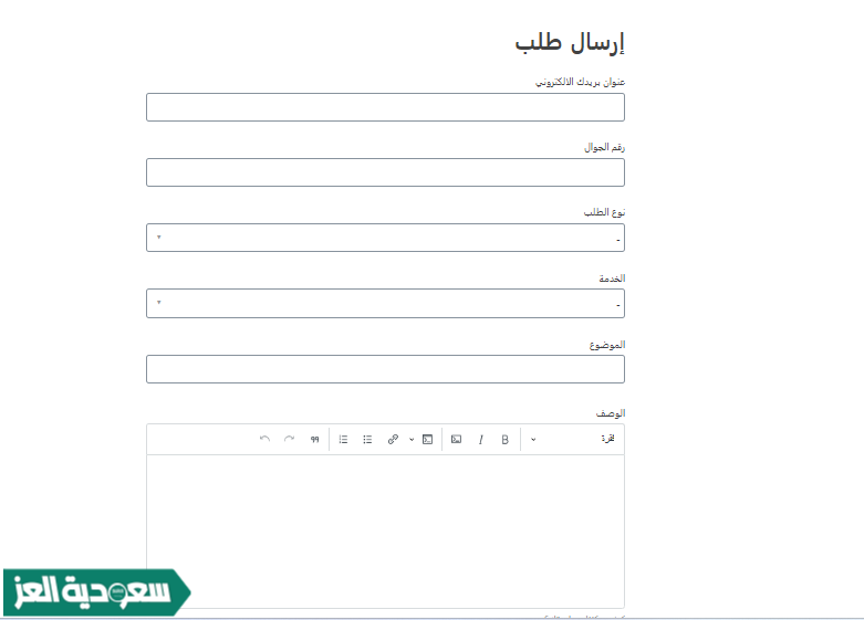 - تحديد نوع الخدمة من القائمة المنسدلة.